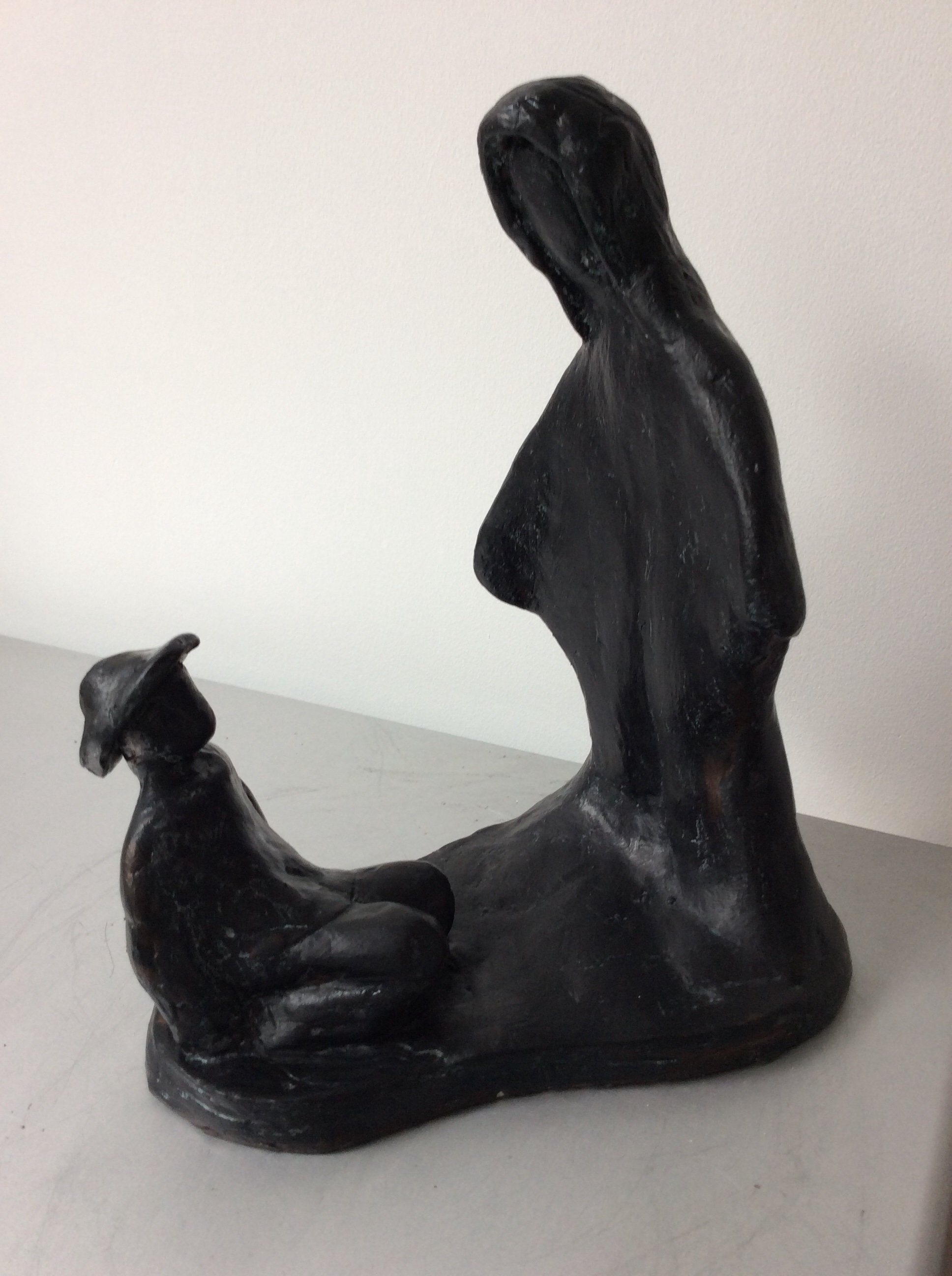 La femme à l’enfant. Terre crue et acrylique. H:24cm.