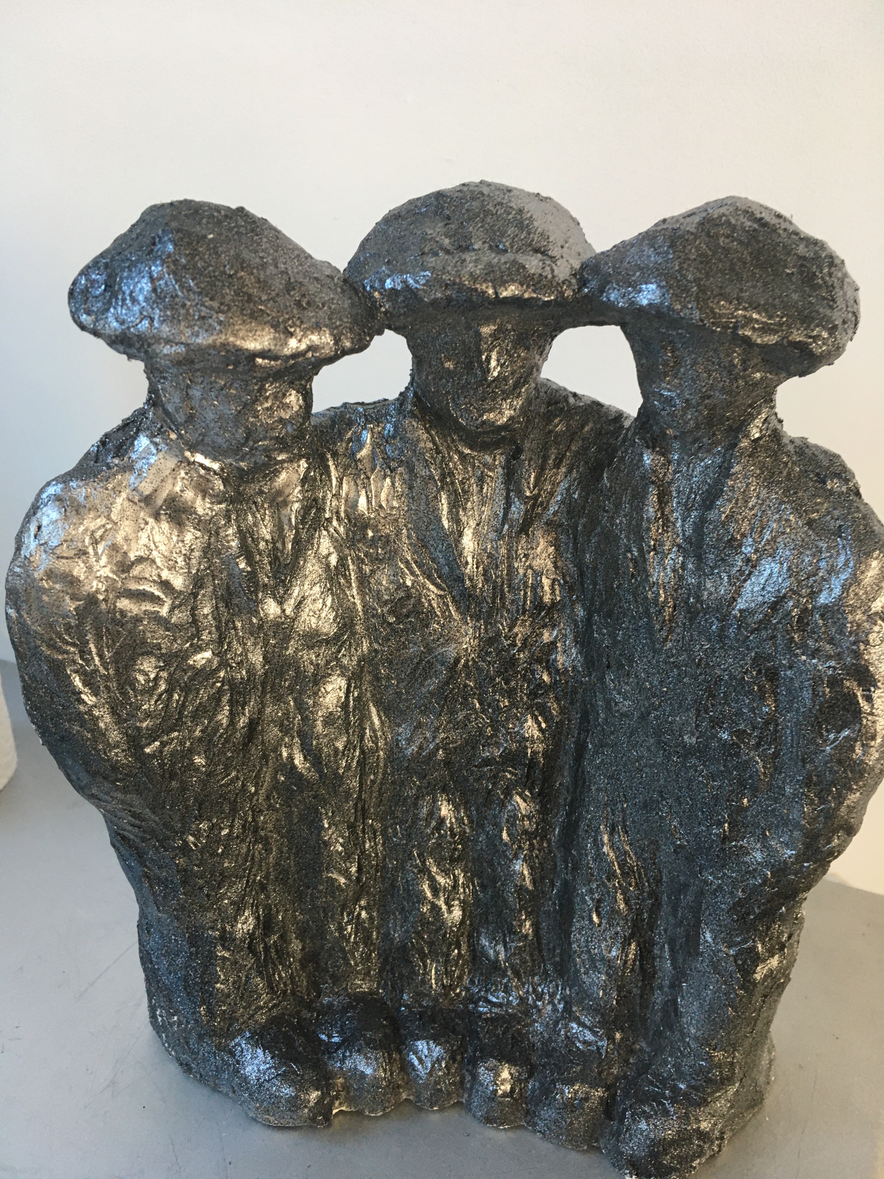 L’arrivée. Terre crue et patine ardoise. l:32cm, L:27cm, h:16cm.