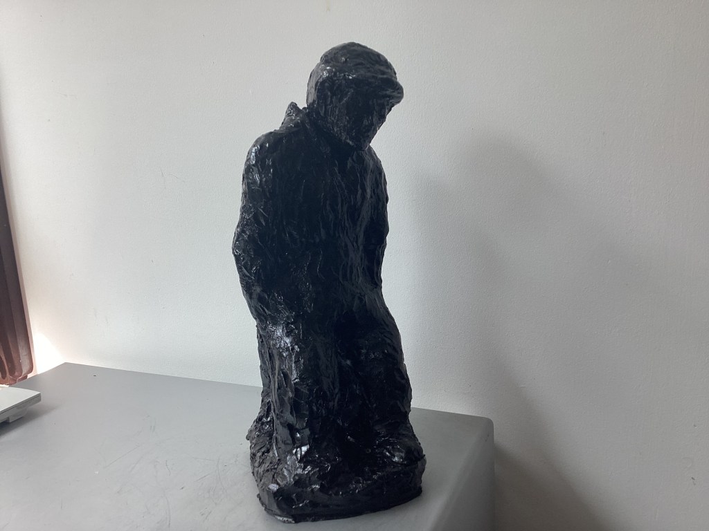 Contrition. Terre crue patinée noire. H: 22 cm.